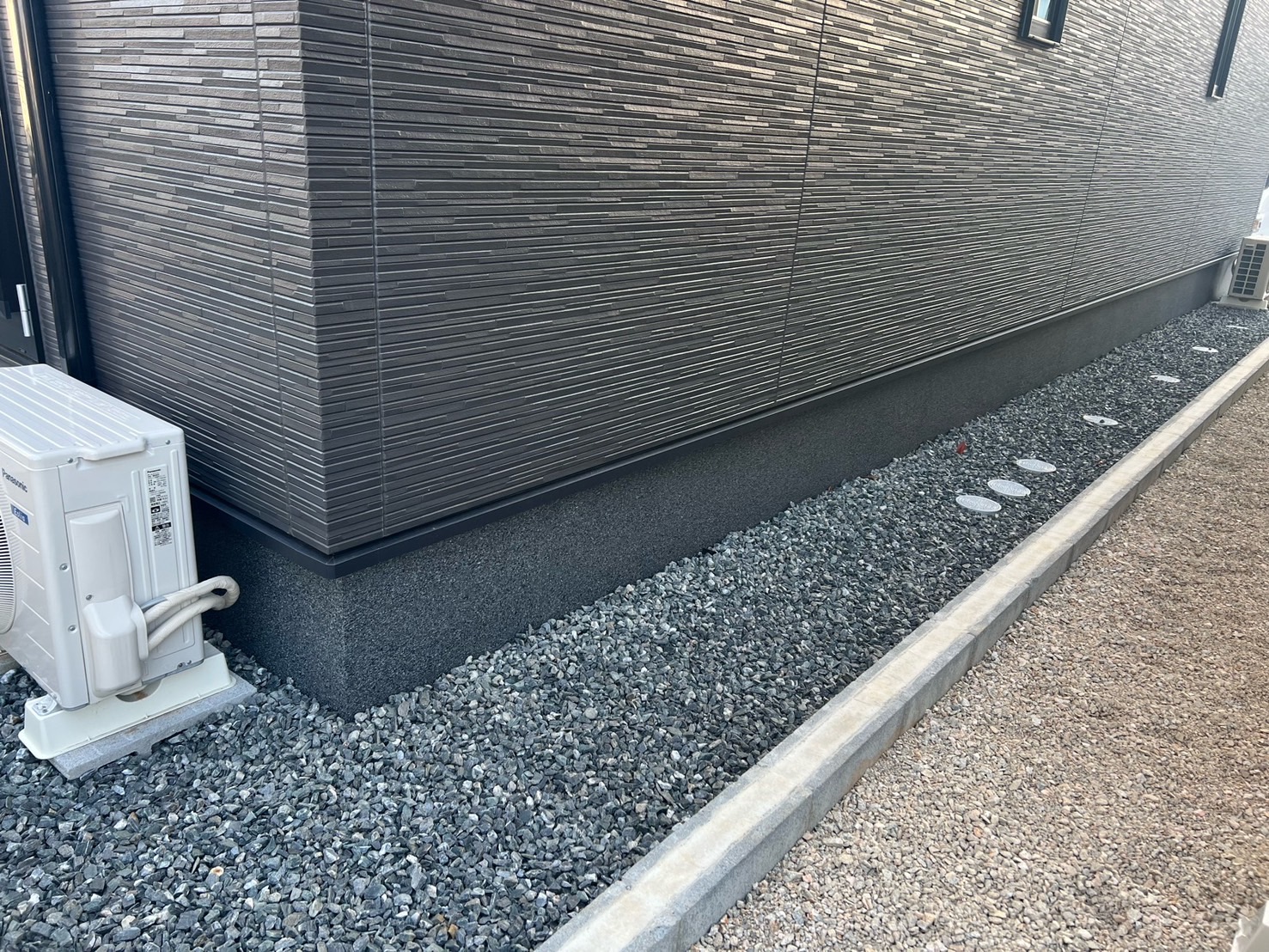 塗装を施すことで、家全体の外壁イメージが大きく変わりました!新しく塗られた基礎巾木が外壁と美しく調和し、見た目にも高級感が漂います✨基礎巾木の色を外壁に合わせてコーディネートすることで、統一感のある素敵な仕上がりになります。