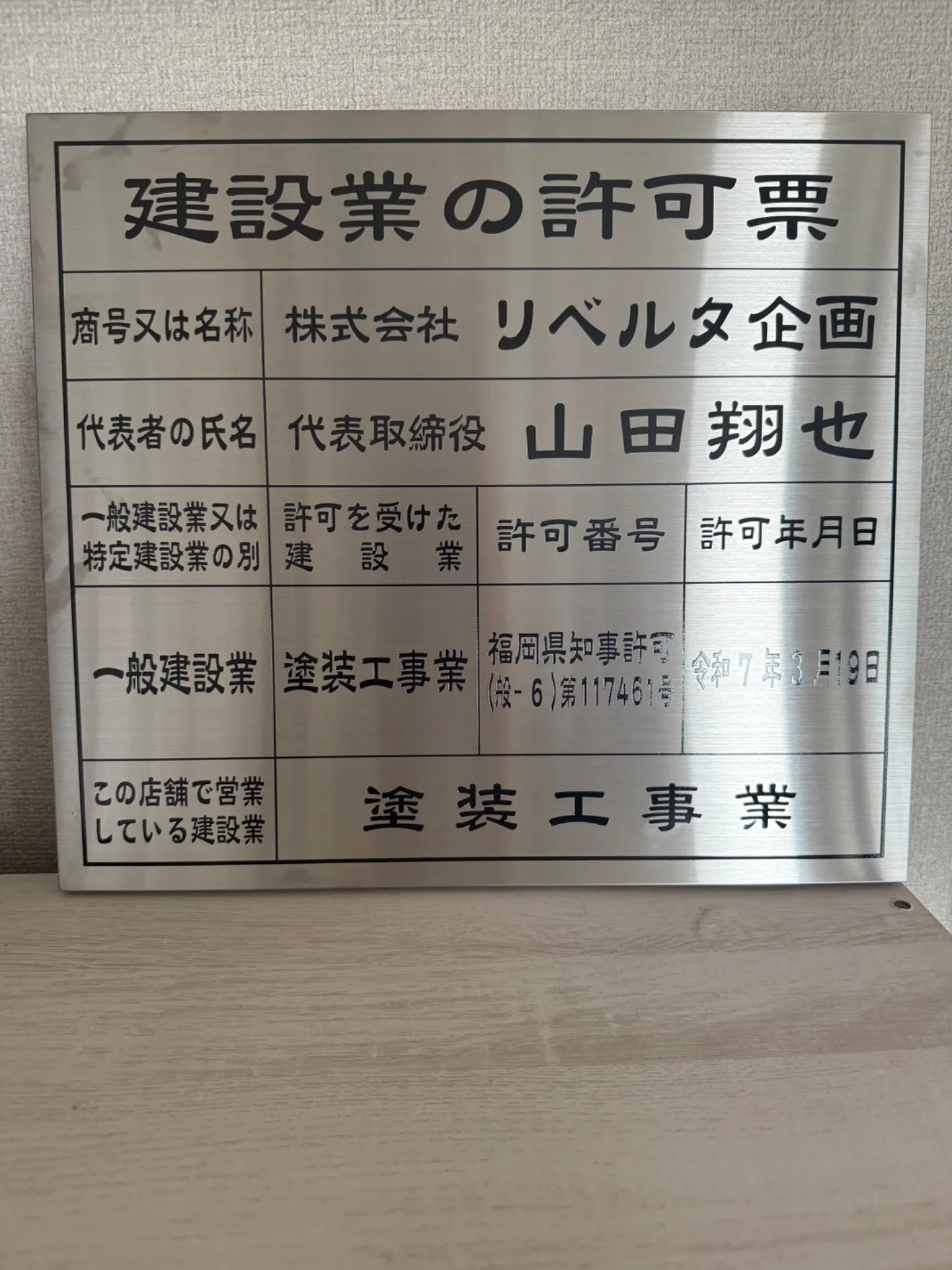 取得許認可 | 福岡県知事許可 (版一6)第117461号 |